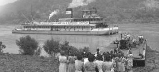 Sights which are interesting to strangers on the river, but common to the rivermen, are the boats which pass along the route. Some are ancient sternwheelers, others ultra-modern diesels, but each follows the same river path, and all boats have become neighbors on the Ohio.
